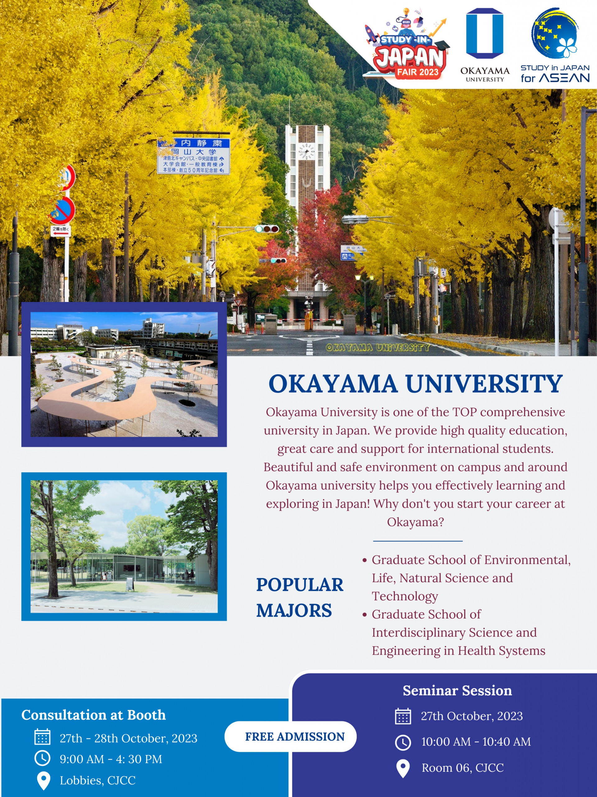 Okayama University will meet all of you in the Study-in-Japan Fair 2023